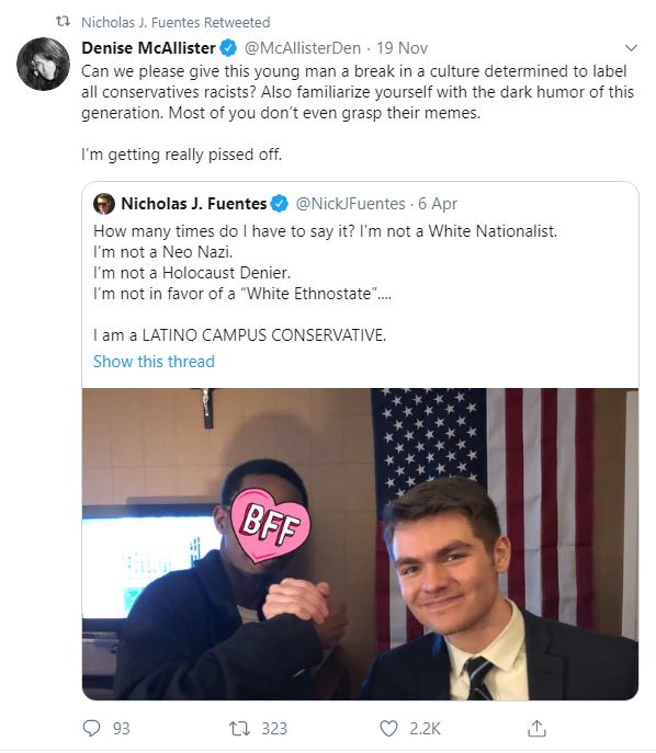 I checked out the channel of 21-year-old Nicholas J. Fuentes, host of a daily YouTube show called America First, of which he has done nearly 500 episodes, and a leader in this new conservative movement. Allegations of him being some kind of “white nationalist” were already swirling. I got to witness the anatomy of a hi-tech lynching in real-time. He is a staunch Catholic (that’s one mark against him) and campaigned for Donald Trump in 2016. He had attended the now-infamous Charlottesville rally, but since been openly opposed to the exposed and discredited alt-right leaders. He acts out a “joker-like” personality on his show which is brimming with sarcasm and dank internet humour.