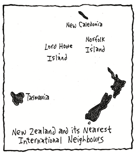 New Zealand’s nearest neighbours are Tasmania and New Caledonia (1,000 miles north-north-west). New Zealand is isolated. Most of the inhabited isolated islands of the world are small. New Zealand is small, but not all that small. And it’s quite inhabited. The islands of New Zealand are the biggest inhabited isolated islands in the world.