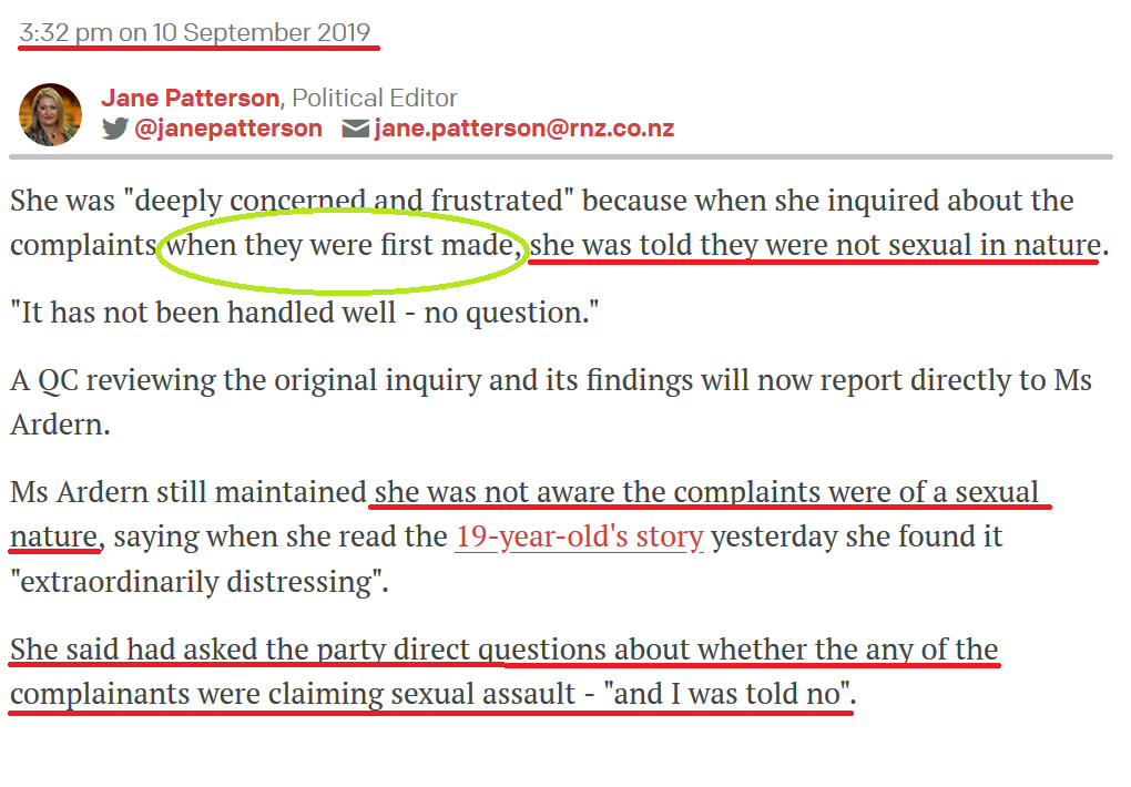 On September 10th, 2019 Jacinda Ardern three times denied knowing that the assault complaints were sexual in nature.