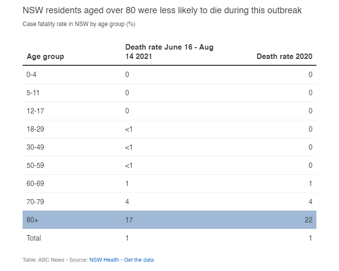 Tens of thousands of people have been infected with the Delta strain of COVID-19 in NSW, but the outbreak has not been as deadly as those last year, data shows.