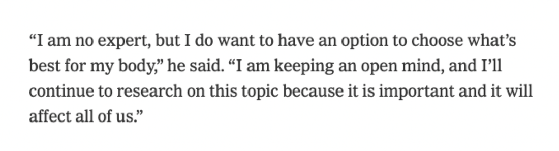 I wanted to take a moment to recognize Novak Djokovic and his heroic defiance of the COVID regime, lending his enormous platform and status to the millions of people around the world who have been denied their unalienable rights in the name of a virus.
