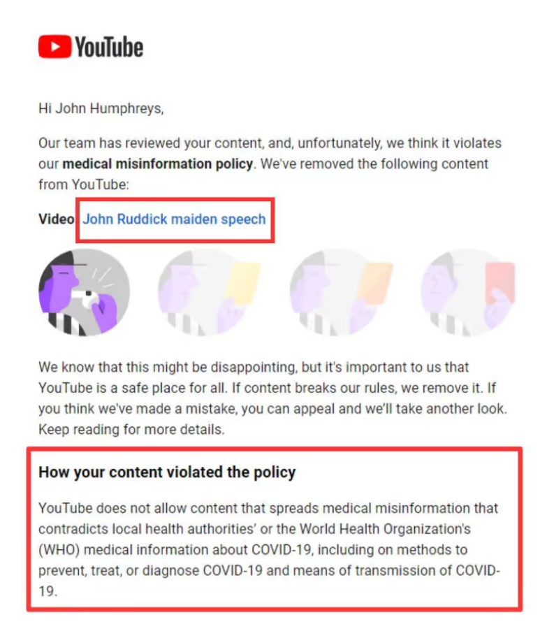 YouTube claims that the video violated its ‘medical misinformation policy’, and implied that removing the video was necessary to ensure that YouTube remains a ‘safe place for all’.