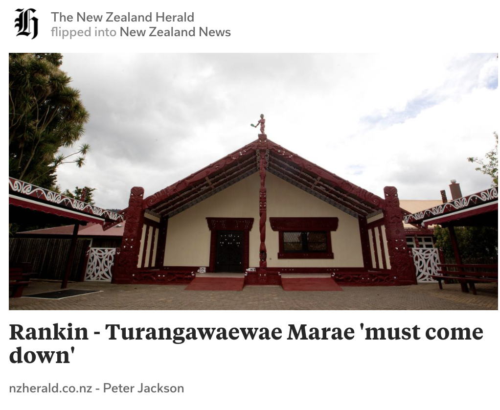 An article written by Peter Jackson that was published by the NZ Herald on the 16th of June has been removed, and it has not been re-published by any other mainstream media outlet. It included comments by Ngapuhi leader David Rankin that turned the whole Black Lives Matters trend on its head as he called for Turangawaewae Marae to be torn down.