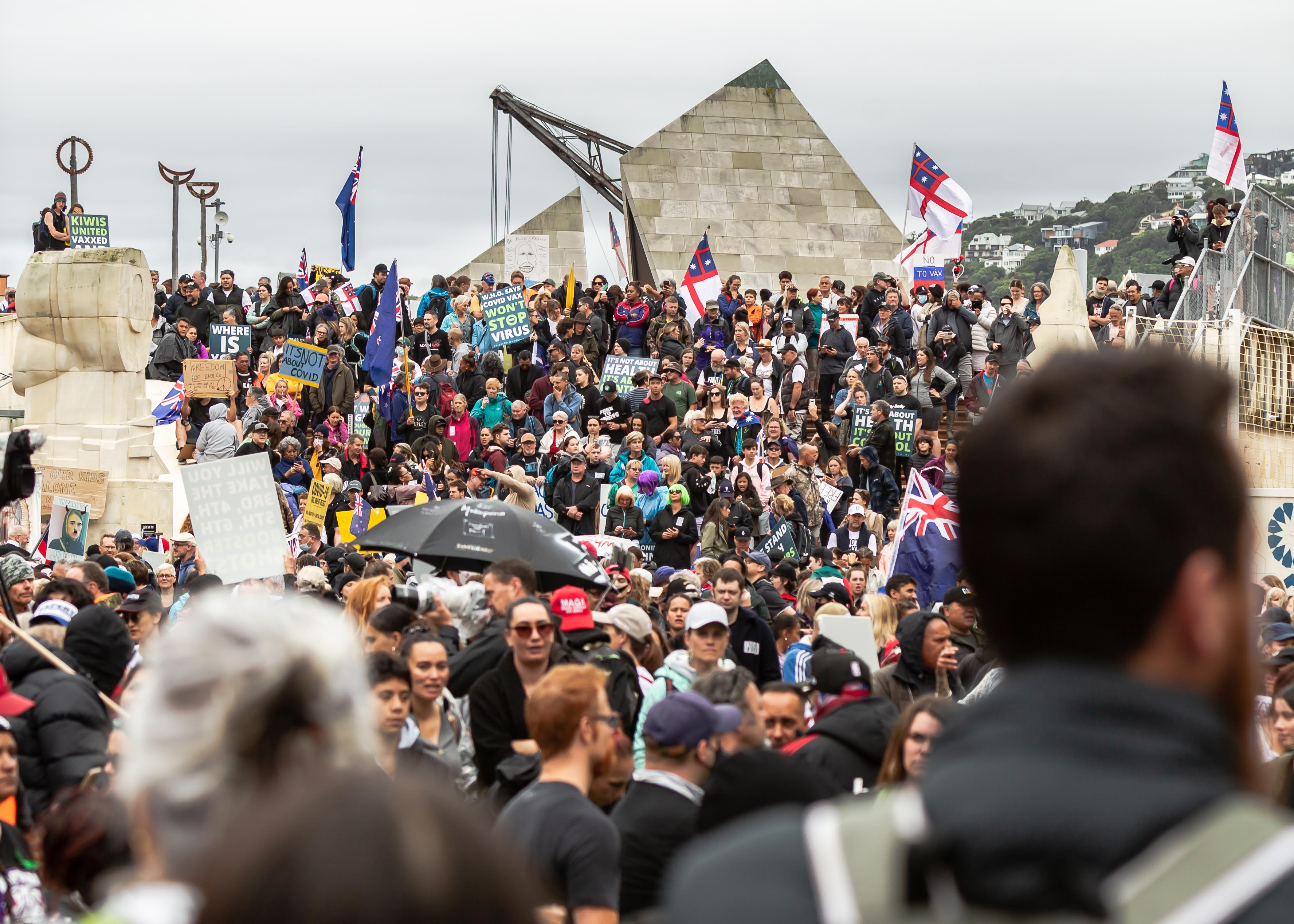 The demonstrators certainly weren’t short of things to protest about: Labour’s SNA “land-grab” policy, the government’s lack of transparency, anti-democratic behaviour and the way it has mandated compulsory vaccinations for certain sectors of society all featuring in the protest.
