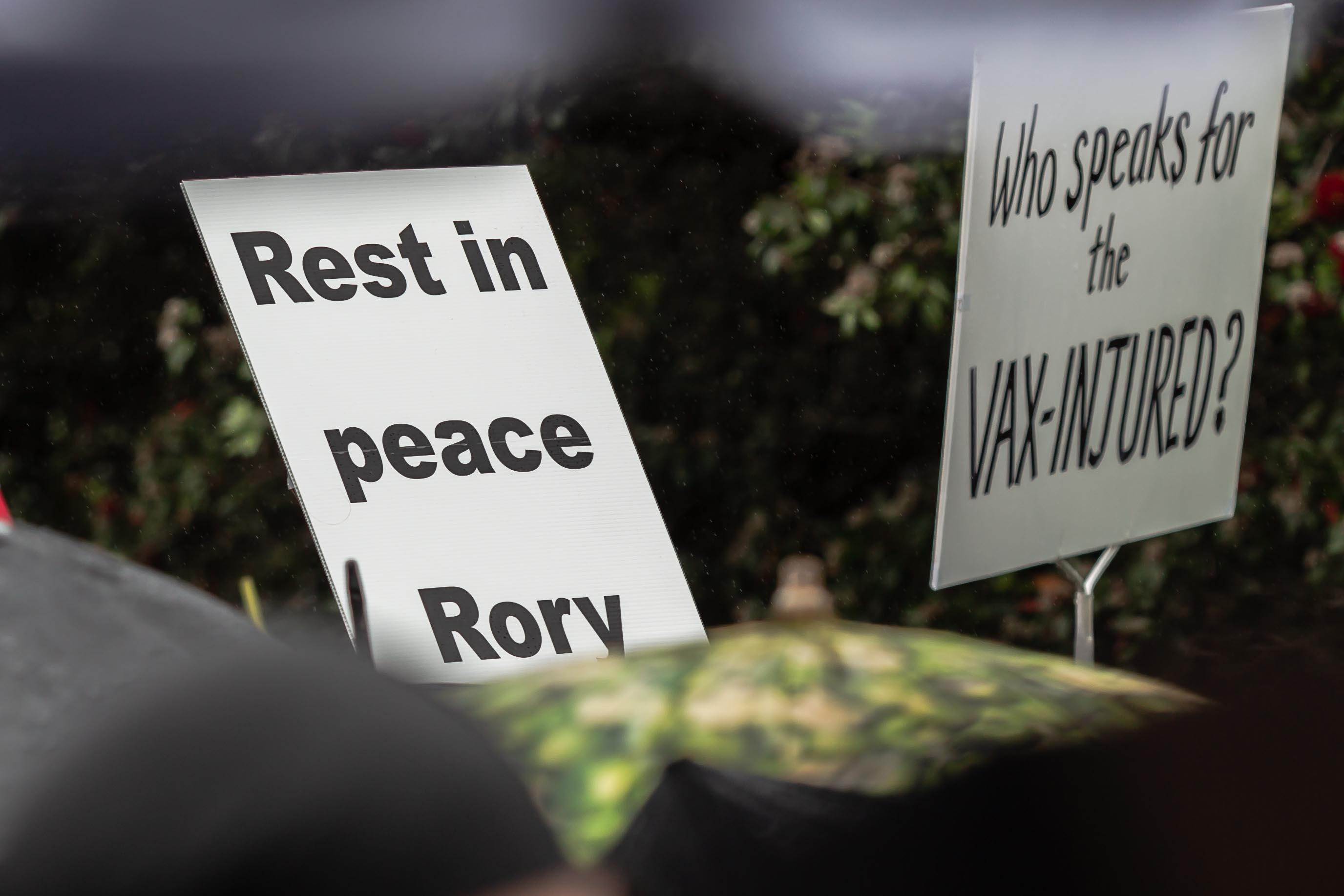 On arriving in Parliament grounds the protesters sang the national anthem and Ashleigh Wilson spoke about the shock of losing her fiancée, Rory Nairn, 12 days after receiving his first dose of the Pfizer vaccine highlighting the need for accurate and easy-to-understand information: “If we had truthful information, and were told about these side effects, he [Rory] could still be alive,” she said. “If we weren’t forced into making a choice between our jobs, incomes, and livelihoods, he could still be alive.”