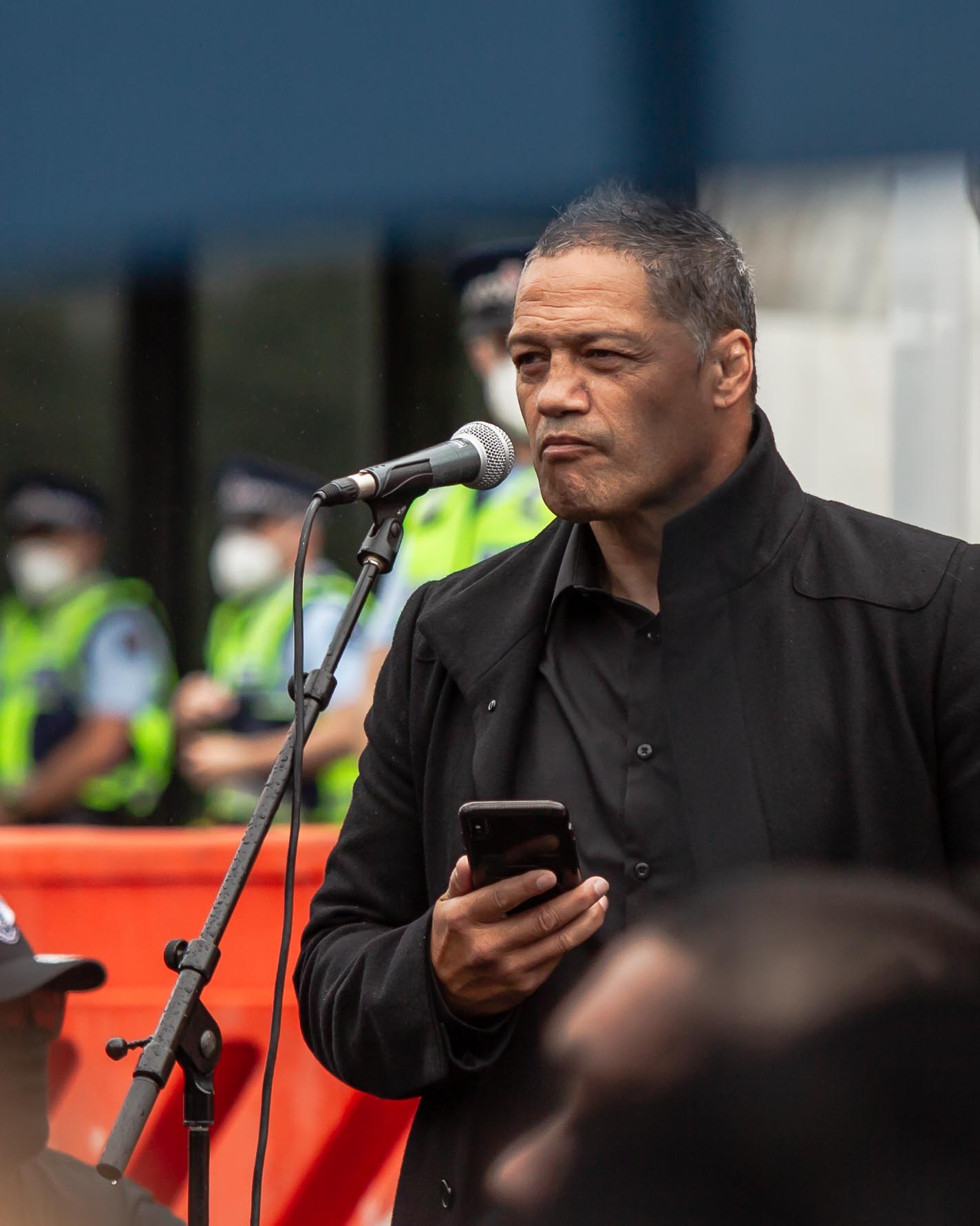 “We must not lose sight of why we are here,” said Derek Tait, leader of the South Island branch of the Freedoms and Rights Coalition. “We are not your enemy”, he stated, addressing the Police: “we are your people, and you serve us.”