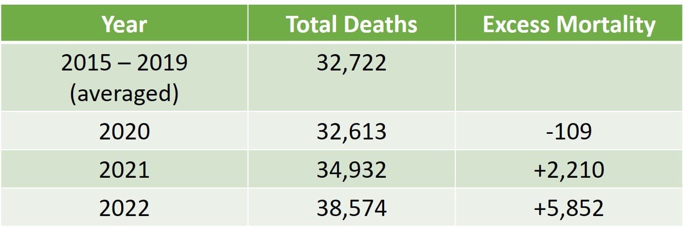 In fact, according to StatsNZ, the population increased by a mere 21,100 people in 2021 and 5,800 people in 2022, which in no way, shape or form, explains the increased numbers of deaths being seen. Even the mainstream media can’t hide from the tidal wave of deaths we are suffering.