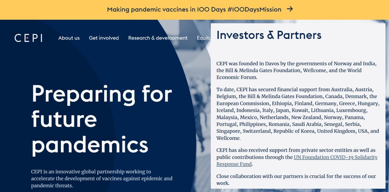 CEPI was founded in Davos, Switzerland, by the governments of Norway and India, the Bill & Melinda Gates Foundation, Wellcome Trust and the World Economic Forum, and to date has secured financial support from many countries including NZ, as well as USAID – well known for it’s links to the CIA.