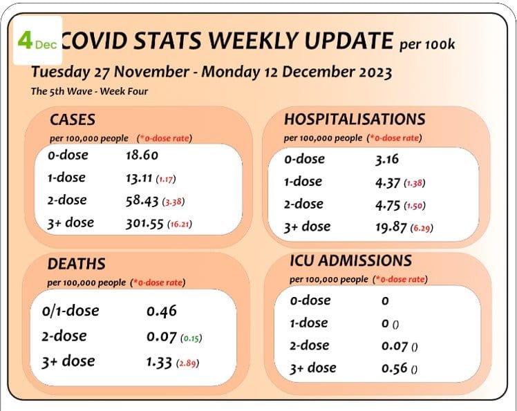 Plunket’s suggestion which Petousis-Harris appeared to agree with, that the vaccines reduce the chances of a person getting and transmitting Covid, of having a severe case of Covid and of being hospitalised due to Covid, are directly contradicted by the data which he claims Petousis-Harris is terribly well-versed in, due to being an expert. New Zealand’s real world data is supported by an array of literature showing that the more doses a person has, the more likely they are to be infected, to develop serious illness, to be hospitalised and to die with Covid-19. This is well explained by the mechanisms of action and harm.