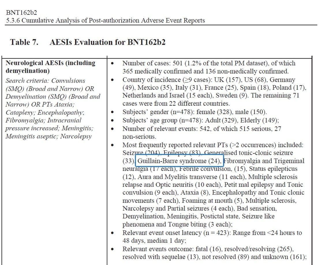 Petousis-Harris added to her litany of lies by claiming that Guillain-Barré syndrome (GBS) is not an adverse event occurring after mRNA vaccination. Independent literature shows otherwise, and Pfizer’s own documents show otherwise.