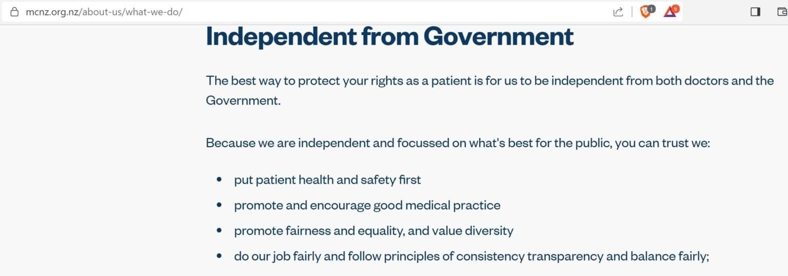 How is it possible that doctors asking questions regarding the Covid response were investigated on flimsy complaints, but doctors who encouraged the narrative were not? How is it that politicians, media personalities, influencers, sports personalities etc who were all practicing medicine without a licence, faced no sanctions or consequences, while qualified, experienced doctors were silenced and not able to provide their professional medical opinions? How are New Zealanders to trust the MCNZ? It appears that the MCNZ has lost both legal and moral authority to protect the health of New Zealanders and administer doctors.