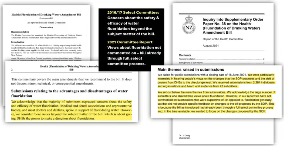 Select Committee processes have persistently failed to address public concerns about risk from fluoridation and the BNT162b2 gene therapy. New Zealand officials have not taken steps to impartially review the scientific literature. The public, stepping in to shed light on the gaps, has been ignored and dismissed.