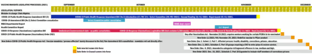 The Amendment Bill (No.2) became law on November 19. One working day later, Hipkins quietly introduced another amendment bill, the COVID-19 Response (Vaccinations) Legislation Bill. Hipkins’ 5,500-word bill was passed in one day, becoming law on November 25. We presume that this Bill was being drafted in October or before. This time, vaccine/vaccination was mentioned over a hundred times.