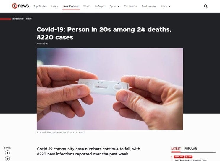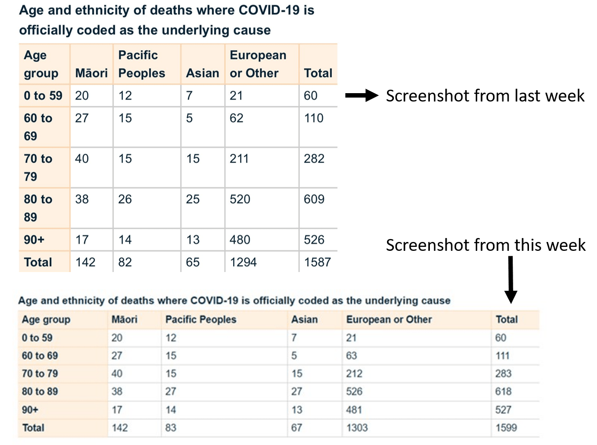 The 20-year-old in this headline from 20 February 2023 died “with” a positive Covid test (possibly a false positive result), not “from” Covid, as ascertained by comparing the previous week’s figures (two weeks ago), with last week’s figures, from the MoH Case Demographics page.