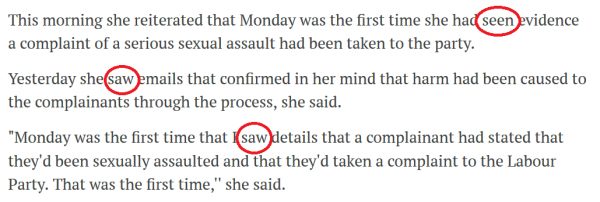 Ms Ardern: You weren’t asked when you first saw the claims, you were asked when you first knew of them, when the sexual nature of the claims was communicated to you and when you were first advised of them. You lied, flat-out lied, got caught, and now you treat us as if we’re as stupid as your Labour party numpties, thinking we’ll be sucked in by your shabby ‘first saw’ sleight-of-hand. How very juvenile. Who thought that up? Neve?