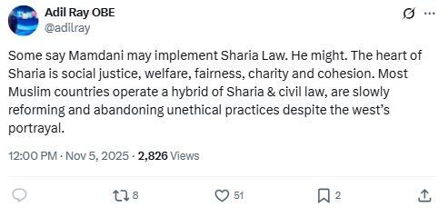 To clarify, I am not actually suggesting Mamdani would implement Sharia law. But many of the issues he campaigned for are also some of the positive values of Sharia that Muslims try to live by. Something many of us would agree on.
