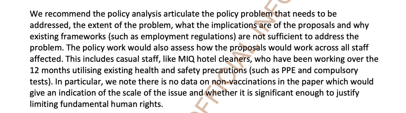 As it states in the documents provided: “the opportunities for discrimination should have been discussed with the Minister for Covid Response”. Whether it was discussed or whether it was dismissed remains to be seen.