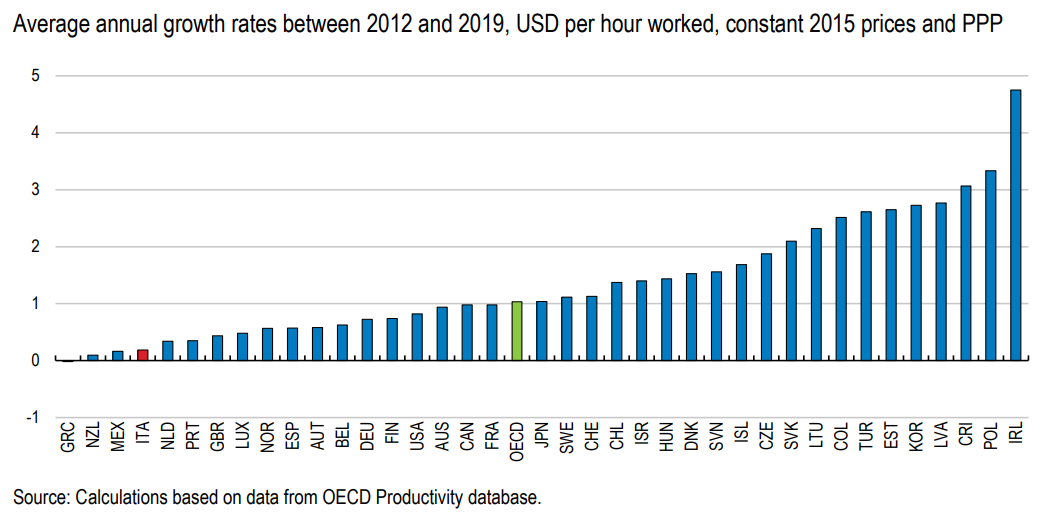 If you doubt how bad New Zealand productivity is, consider this: the OECD flagged productivity as one of Italy’s most pernicious economic threats in the same report prepared for that country.