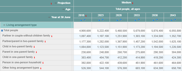 In lieu of pending census results, Statistics NZ projected population living arrangements (based on medium fertility, mortality and migration) predicted there would be 5,222,400 people living in New Zealand, which is pretty much on the button. These would include 641,000 couples with 1,123,500 children, and 248,800 sole parents with 404,700 children. Therefore, 73.5 percent of children live with two parents, not necessarily biological or married. Fewer than three quarters. It is important to note that not all of these ‘children’ will be under 18.