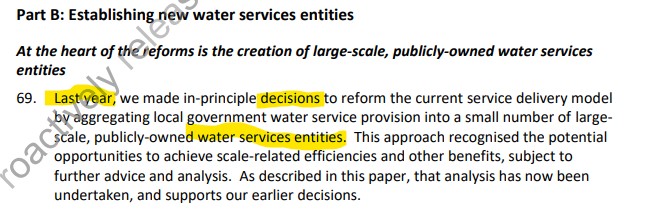 The ‘water services entities’ [WSE] are the four organisations yet to be created by the Labour Government.