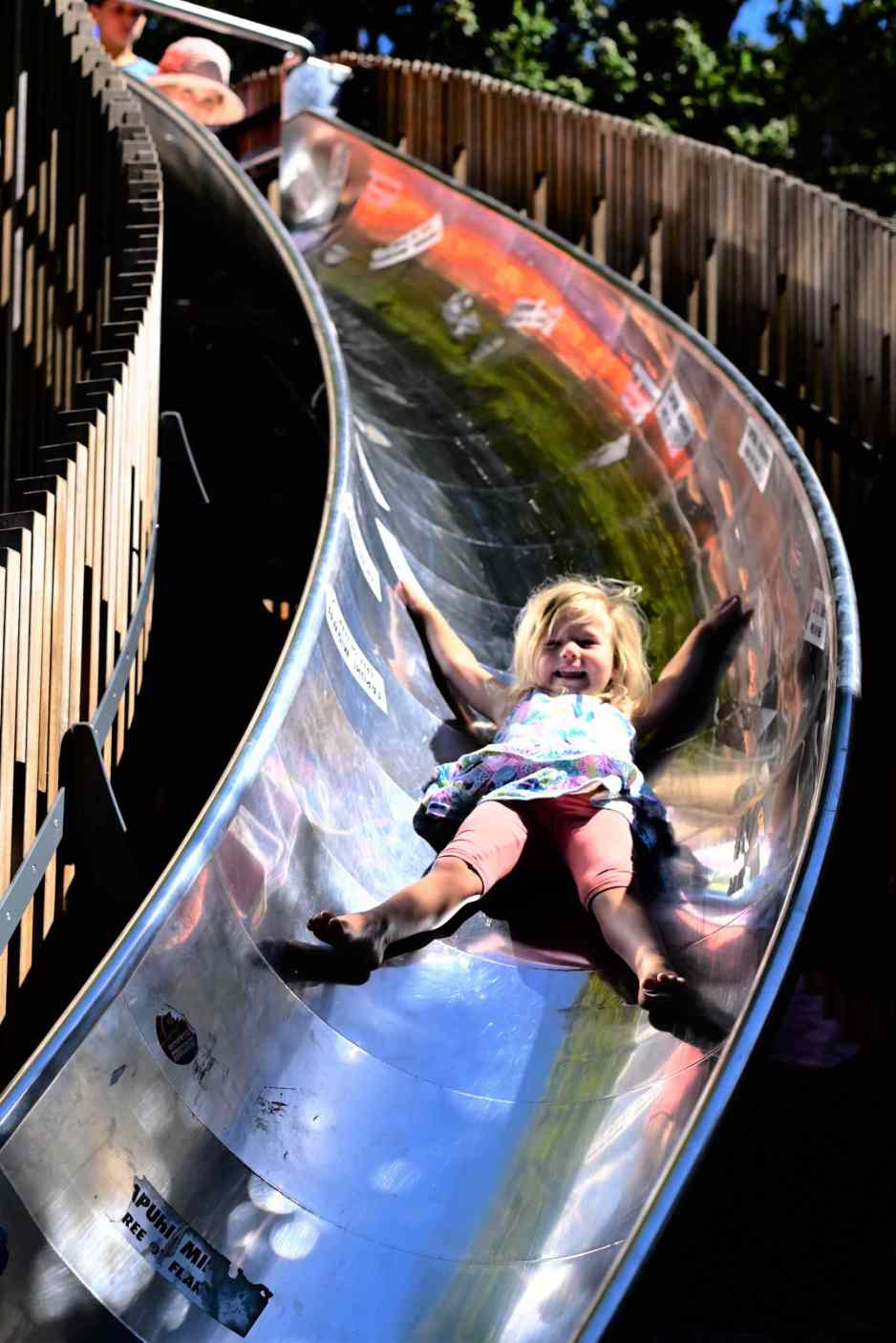There was plenty of entertainment. There were various speakers including Rodney Hide who we unfortunately missed. There was live music from various musicians. Up near the Beehive there is a wall where artists can use chalk to draw pictures and write slogans. There was a fairly good drawing of Mel Gibson’s William Wallace. A basketball hoop near the Freedom Stairs was constantly in use. One of the highlights for many that day was the wedding of an unvaccinated couple who apparently couldn’t get married at a registry office. I guess this way they could have had more than the regulated number of guests! There was a trampoline on Kate Sheppard Place which catered for many children. Trevor Mallard’s famous slide had a constant stream of children using it. When we stopped for a sit down near some grassy banks, my children enjoyed rolling down these.