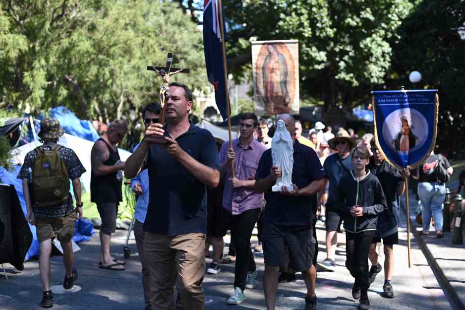 Some find religious Christians ‘eccentric’, so I’ll mention the evangelicals singing songs up near Parliament Library. There were also a group of Catholics holding a crucifix, a New Zealand flag and a statue of Mary who were marching around the precinct. I was told by some that they were marching around parliament 7 times.
