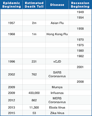 Historically, a pandemic has very rarely caused (or been correlated with) a recession: