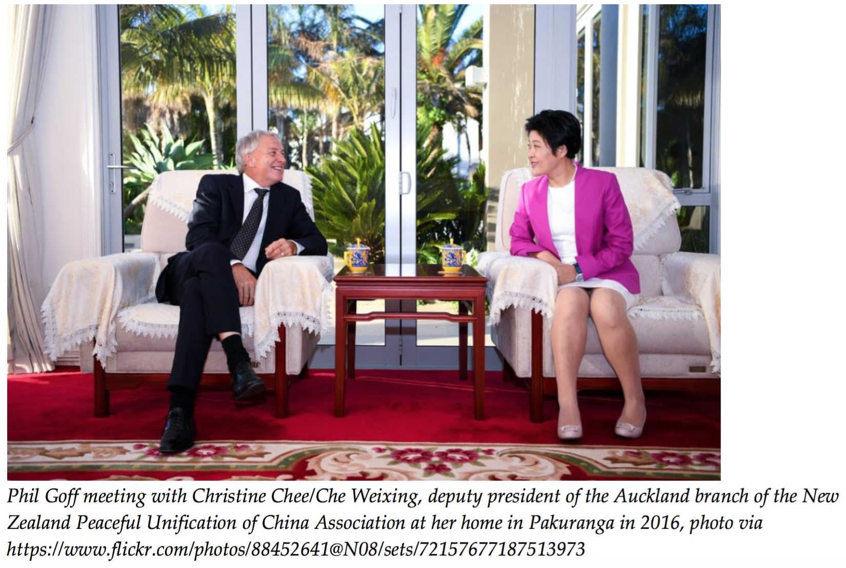 The CCP has long had a policy of developing party-to-party links, but this has expanded even more intensely under the Xi administration which is determined to improve China’s international image and legitimacy and a New Zealand government that appears to have interpreted getting the “political relationship right” with China very literally. The New Zealand Prime Minister (from 2008-2016 John Key, then from 2016- Bill English), National Party President Peter Goodfellow, and Yang Jian are the key point figures on this strategy, and their names feature heavily in Chinese media reports on New Zealand-China relations. Interestingly, Goodfellow and Yang (until the recent controversy) seldom feature in English language reports on New Zealand China relations, whereas the Prime Minister, Foreign Minister and Defence Minister are prominently featured discussing New Zealand-China relations.