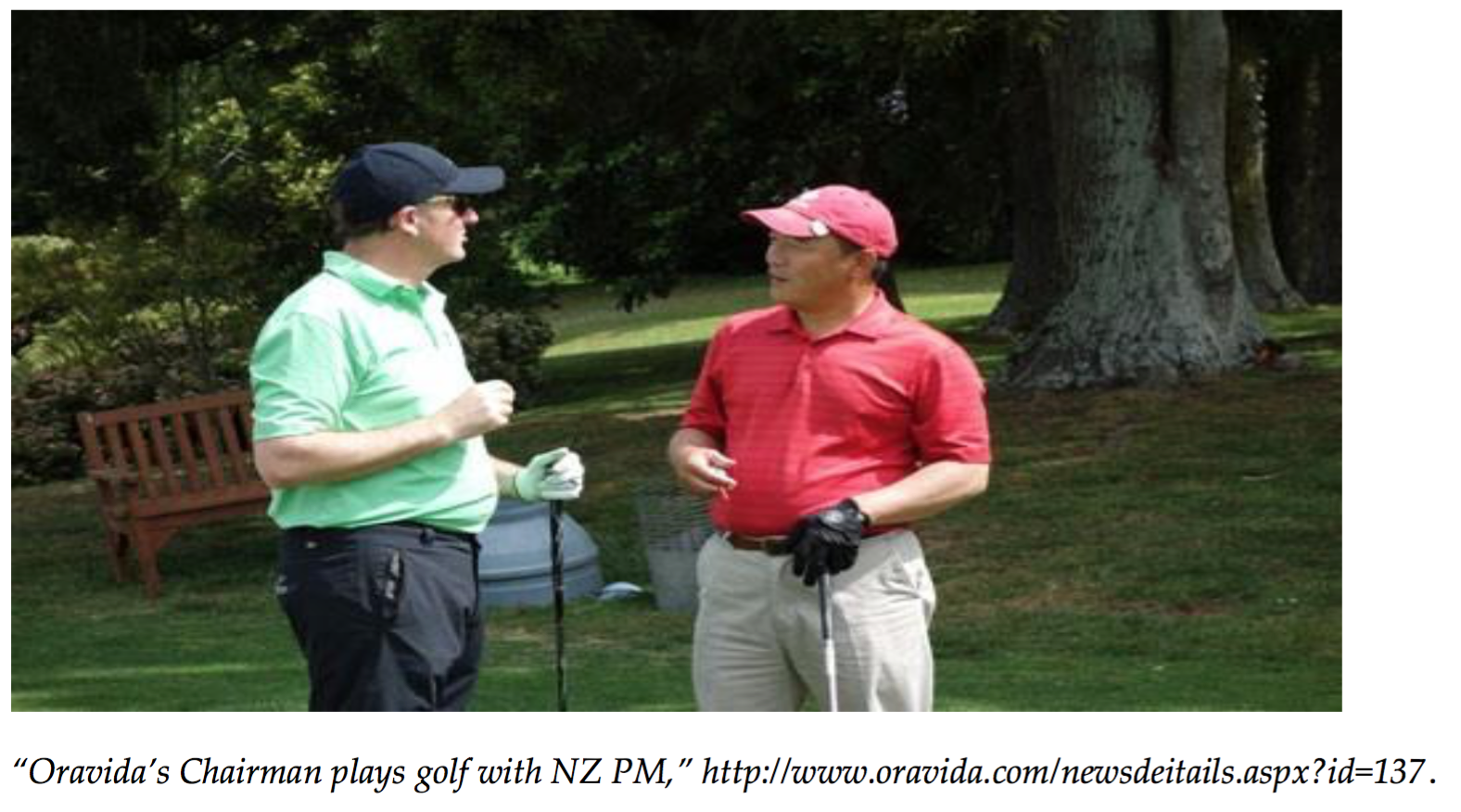 In 2011 Shi Deyi (also known as Stone Shi) donated $56,500 (via Oravida NZ) to National and secured a game of golf with John Key in return. The photo of the match is still used in Oravida publicity. Shi donated a further $30,000 via Oravida in 2013,177 in 2016 he gave $50,000, and then a further $50,000 in 2017.