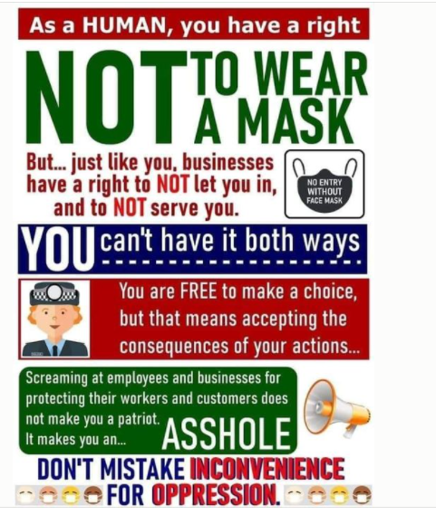 I don’t really participate in social media so I don’t know how widely this image has been distributed but I am sure that if it hasn’t been there are many others like it. It’s saddening because it illustrates how divided our society has become, and how easily a group of people can be motivated to persecute their fellow human beings – their friends, neighbours, and maybe even family members.