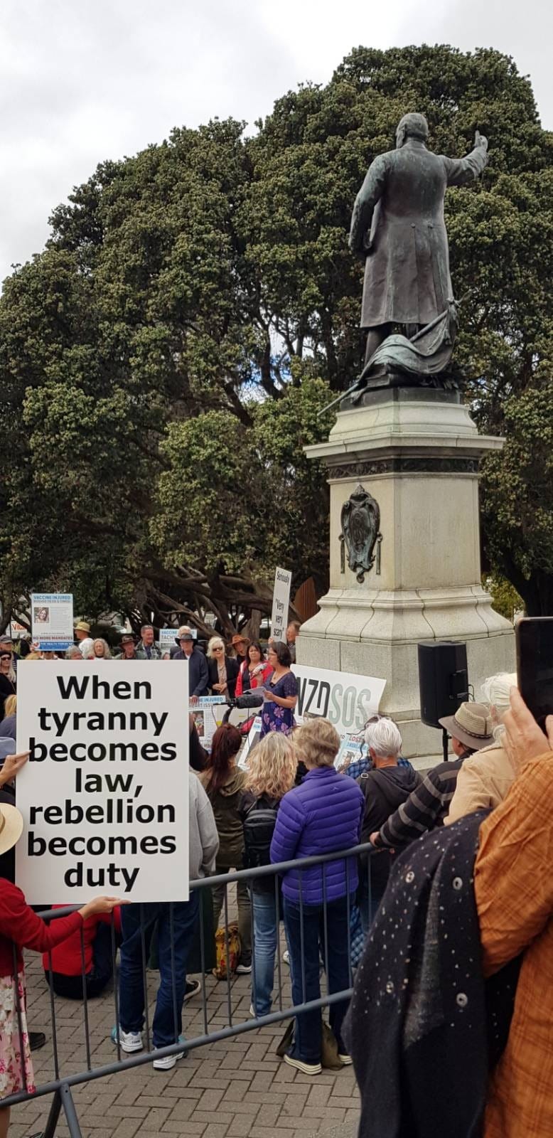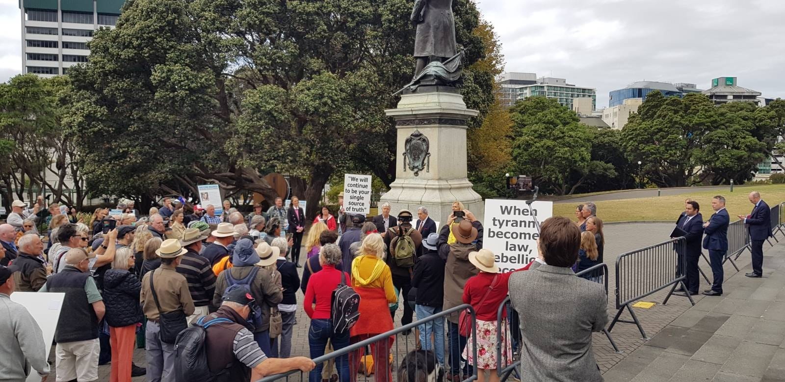 Anyone who challenged the official narrative was labelled as disloyal, unpatriotic, a deceiver and a liar, he said. He told the crowd he was called a “traitor” for talking to the protesters on parliament’s grounds and designated a “terrorist” by Speaker of the House Trevor Mallard.