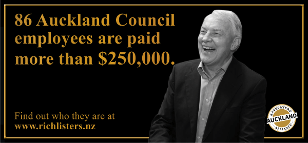 Morally obligated to spend the money we’d fundraised for advertising the Town Hall Rich List on advertising, we hoped to tell you this week that we were buying a billboard right outside the Council’s offices in the CBD. But now we discover the extent of the skulduggery of Auckland Council. We were told last night that the Mayor’s Office has been calling around billboard companies demanding that our Town Hall Rich List billboards are not put up!