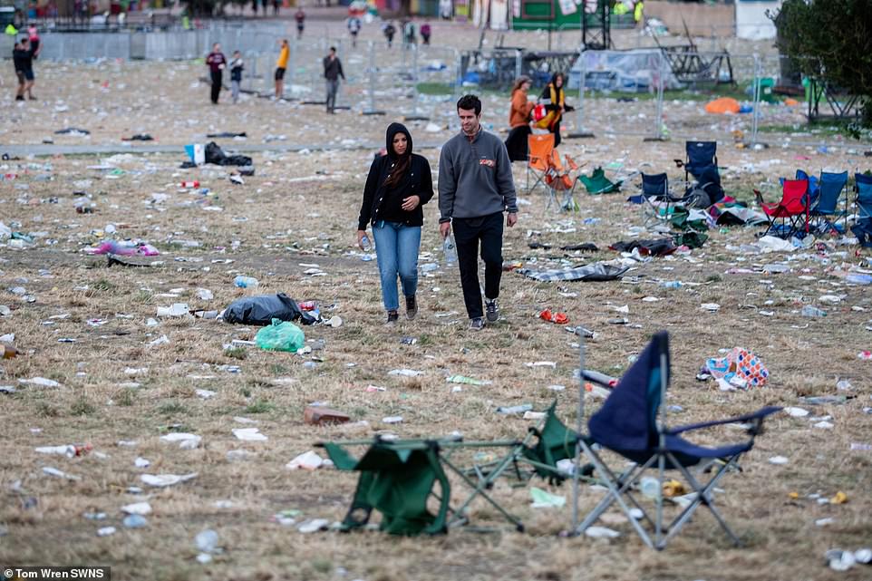 Rubbish was scattered around the ‘plastic free’ event, including plenty of plastic bottles, along with mountains of other debris the festival goers did not take home with them, including chairs and camping equipment.