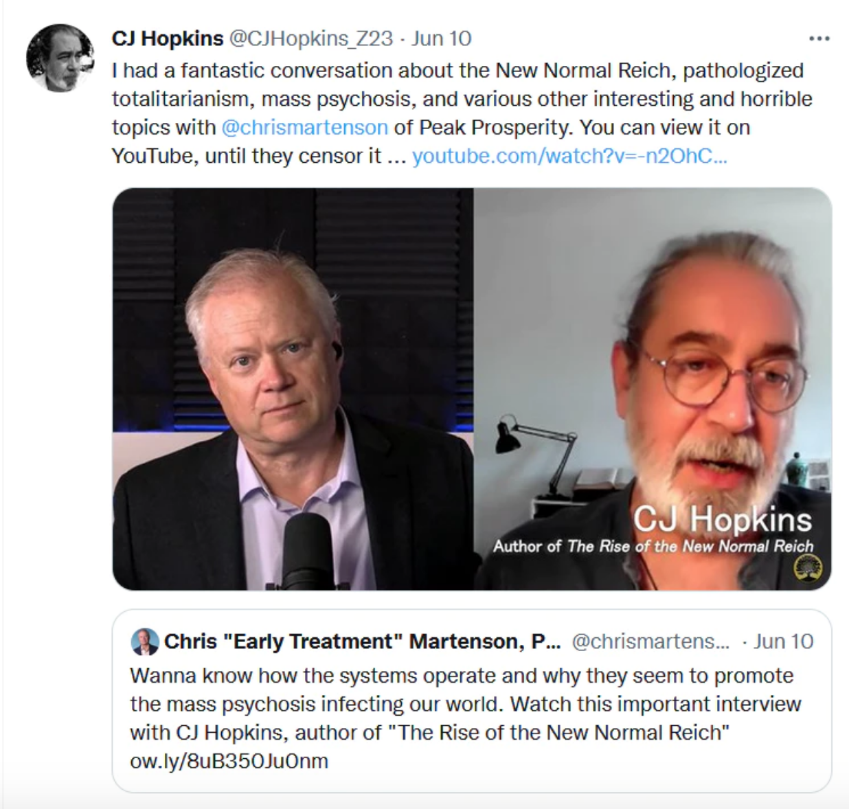 So, I did a couple of new interviews recently, one with Chris Martenson of Peak Prosperity and the other with Elze van Hamelen of De Andere Krant, which is an actual physical newspaper in The Netherlands.