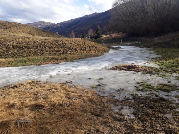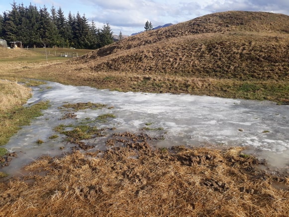 I have owned my current property for about 8 years and this is the first time we have had a glacier in our back yard! This is not just snow left on the ground, it is actual water that has seeped out from the hill and frozen on the ground.