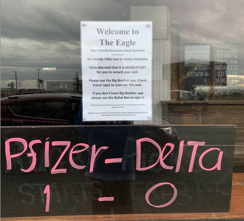 The publican was annoyed with recent directives from the ‘Podium of Truth’ and was aiming to amuse and inform their customers of current events by placing a sign in their window.