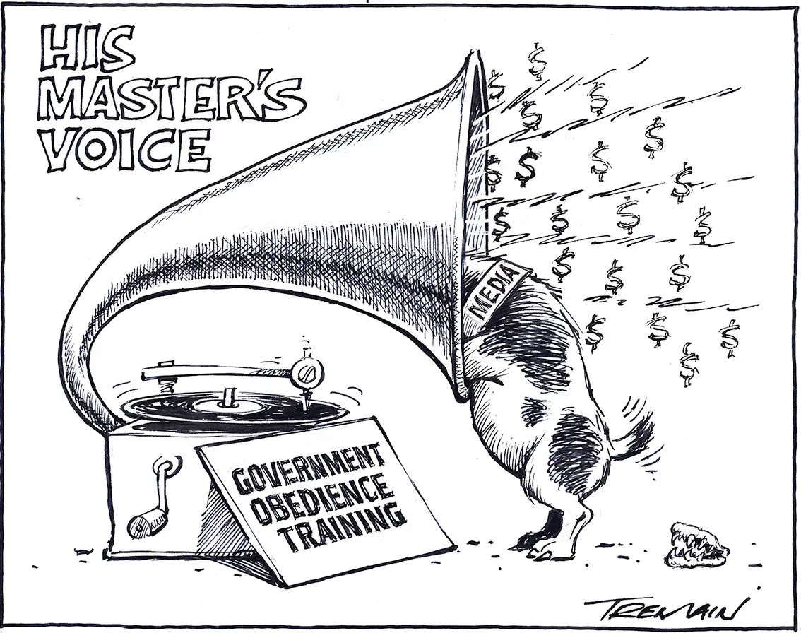 This “His Master’s Voice” effort aptly sums up the disgraceful sell-out by our print media to tow the government line.