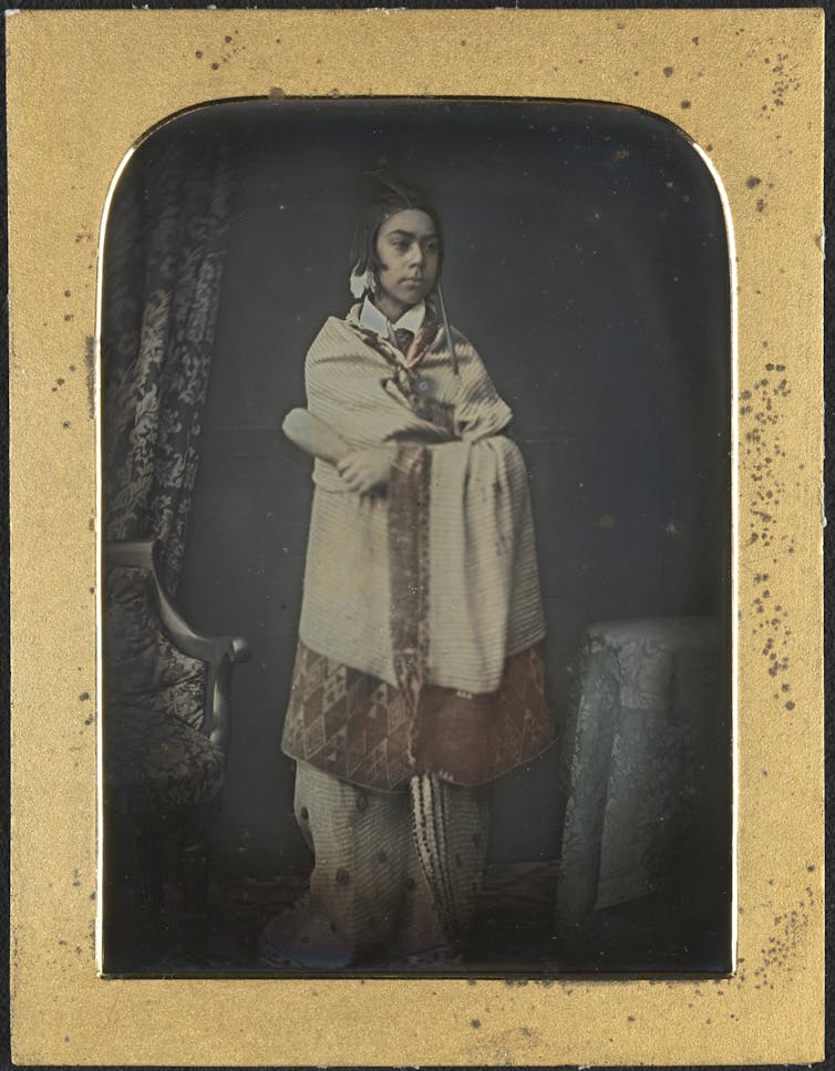 This remarkable daguerreotype shows a wistful young man, far from home, wearing the traditional korowai (cloak) of his chiefly rank. It was almost certainly made by Antoine Claudet, one of the most important figures in the history of early photography.