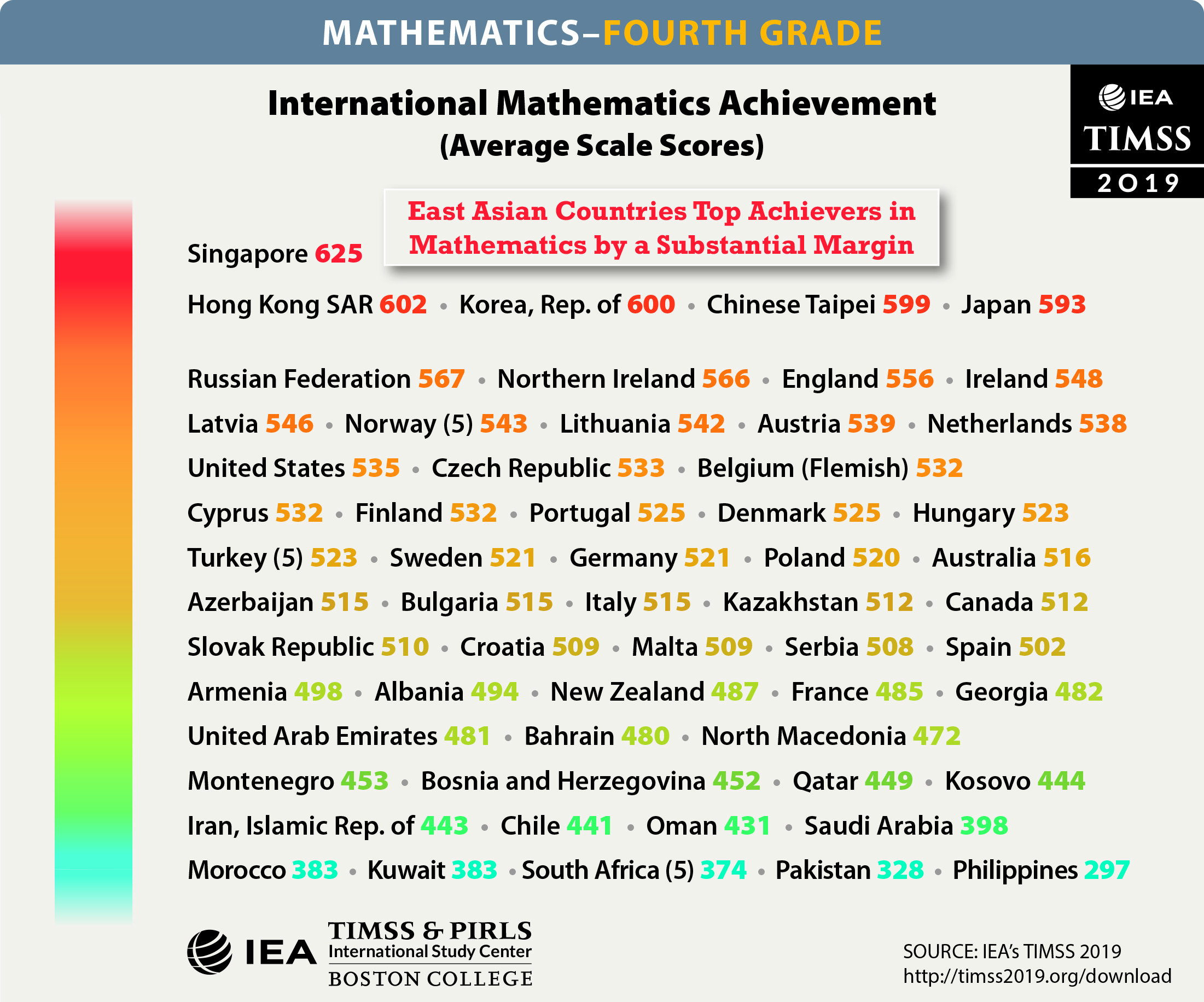 Look at the list of countries and read them to yourself. Look at where New Zealand sits in this list for fourth graders. We are fortieth behind countries like Kazakhstan, Croatia, Serbia, Armenia and Albania. So enough with the “NZ has the best education system in the world” nonsense. We don’t. Our children are being deprived of a decent education because of the hubris and stupidity of successive governments, our ideologically driven and self-interested teacher unions, and a much-vaunted but vacuous national curriculum.