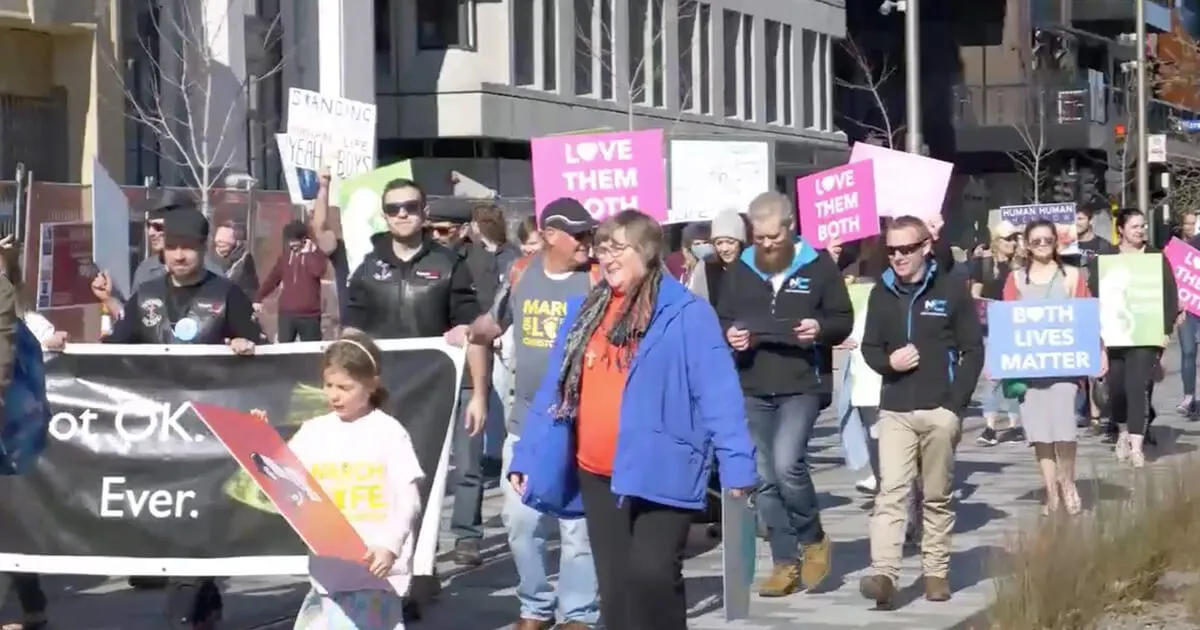 Campaigners participating in the Christchurch March for Life carried signs reading “Both Lives Matter” and “Love them Both”.