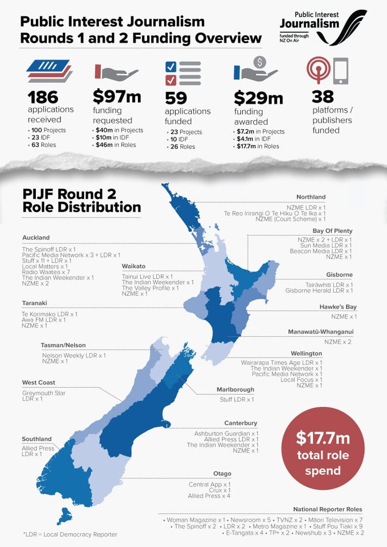 The funding is the result of the second competitive funding round via NZ On Air’s $55m Public Interest Journalism Fund.