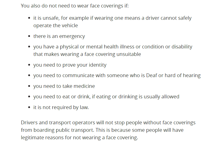 According to your one source of truth, i.e. the Covid19 official government website, “some people will have legitimate reasons for not wearing a face covering.?”
