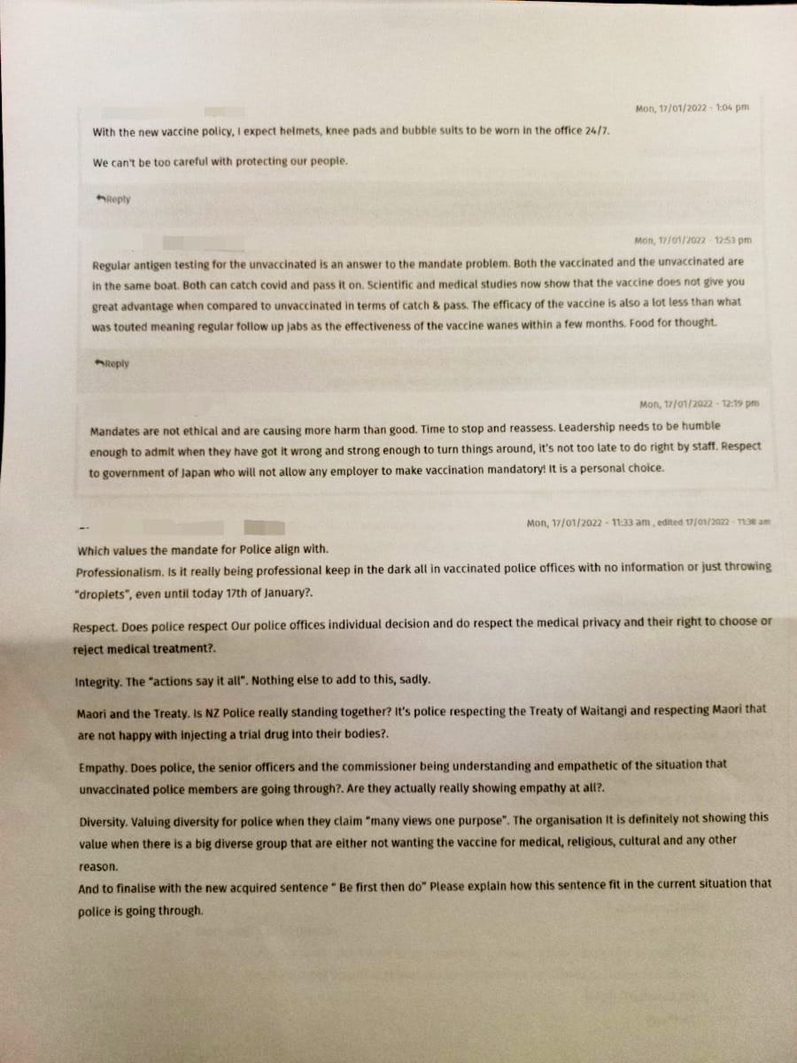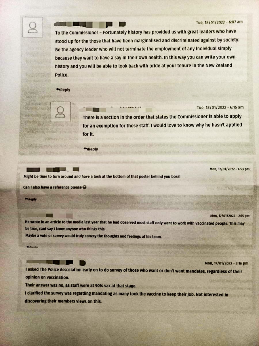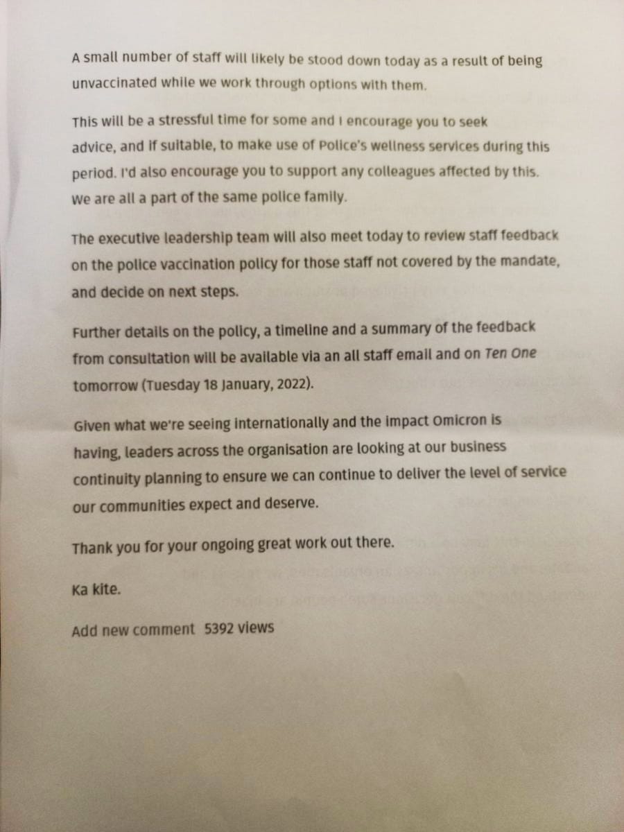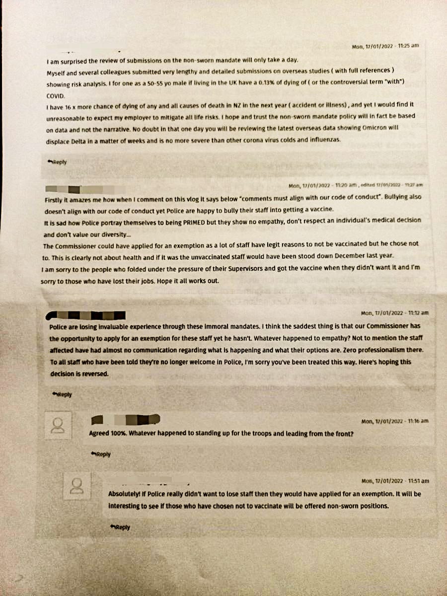 On Monday he posted a video on the Police intranet, along with a transcript of his message explaining what was going to happen next. A patriot and brave soul in the Police has taken screenshots/printouts of this message, but more importantly the significant push back from sworn officers in the comments.