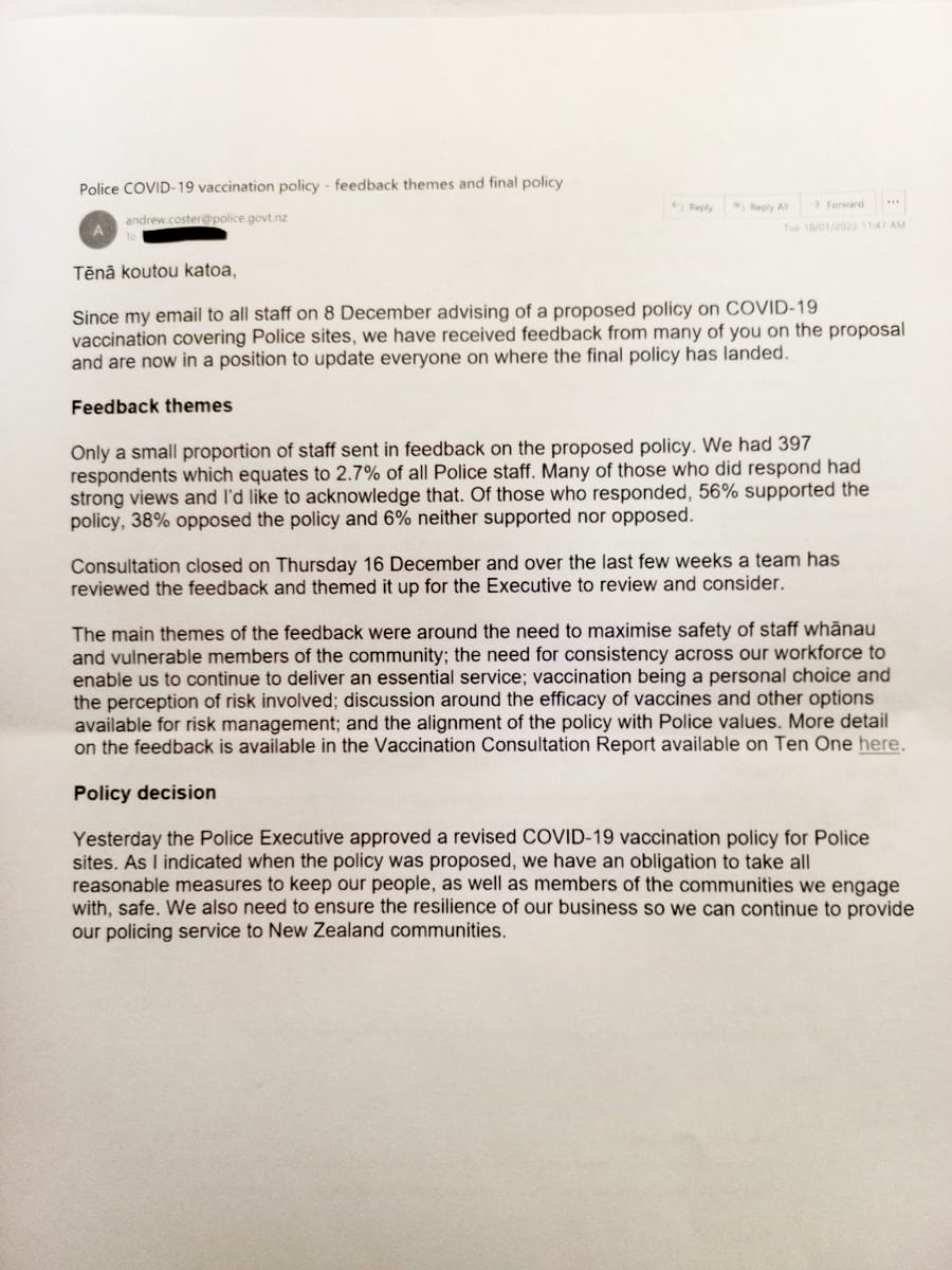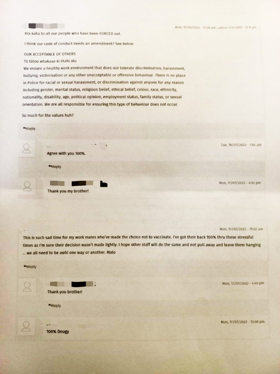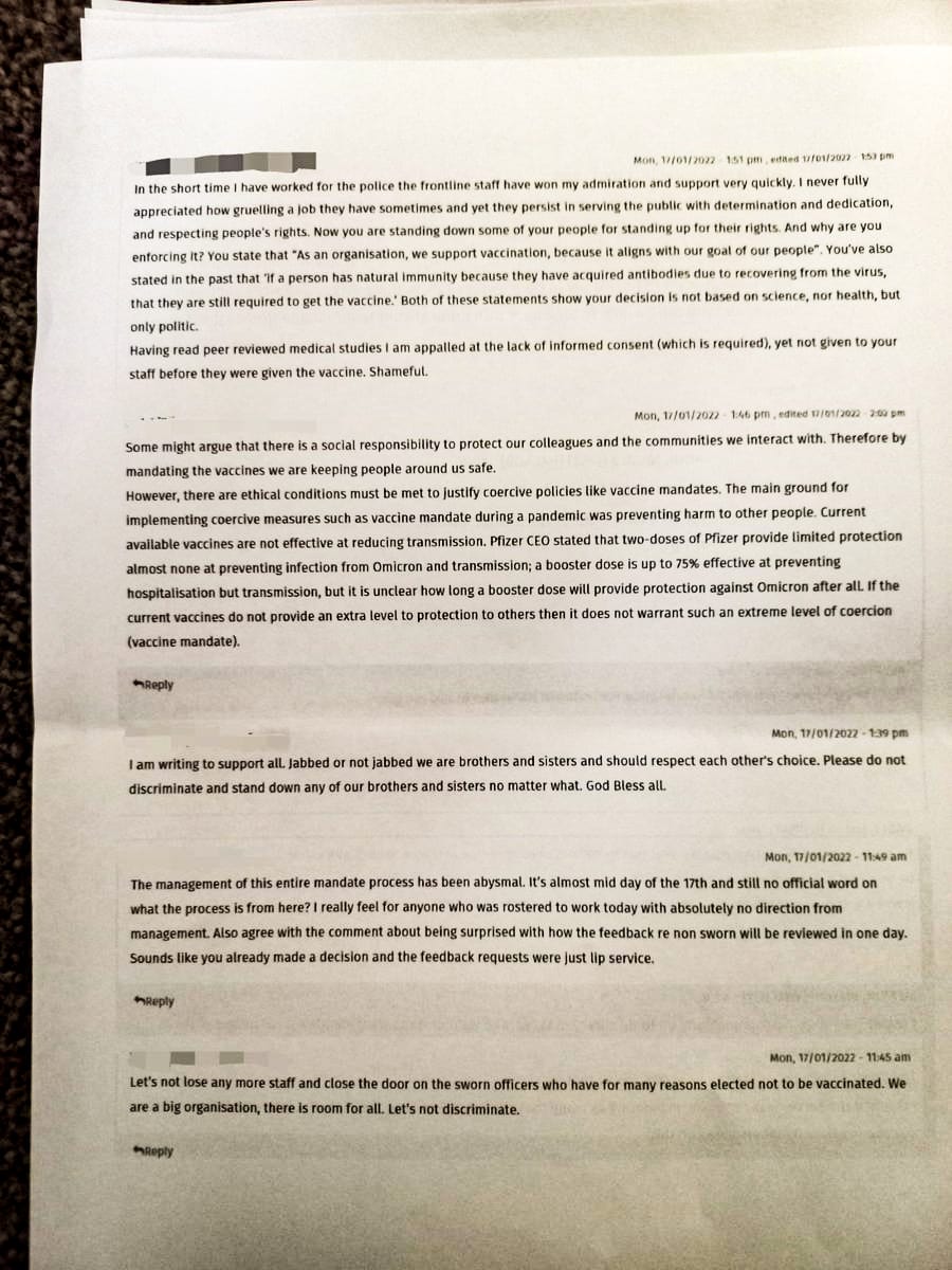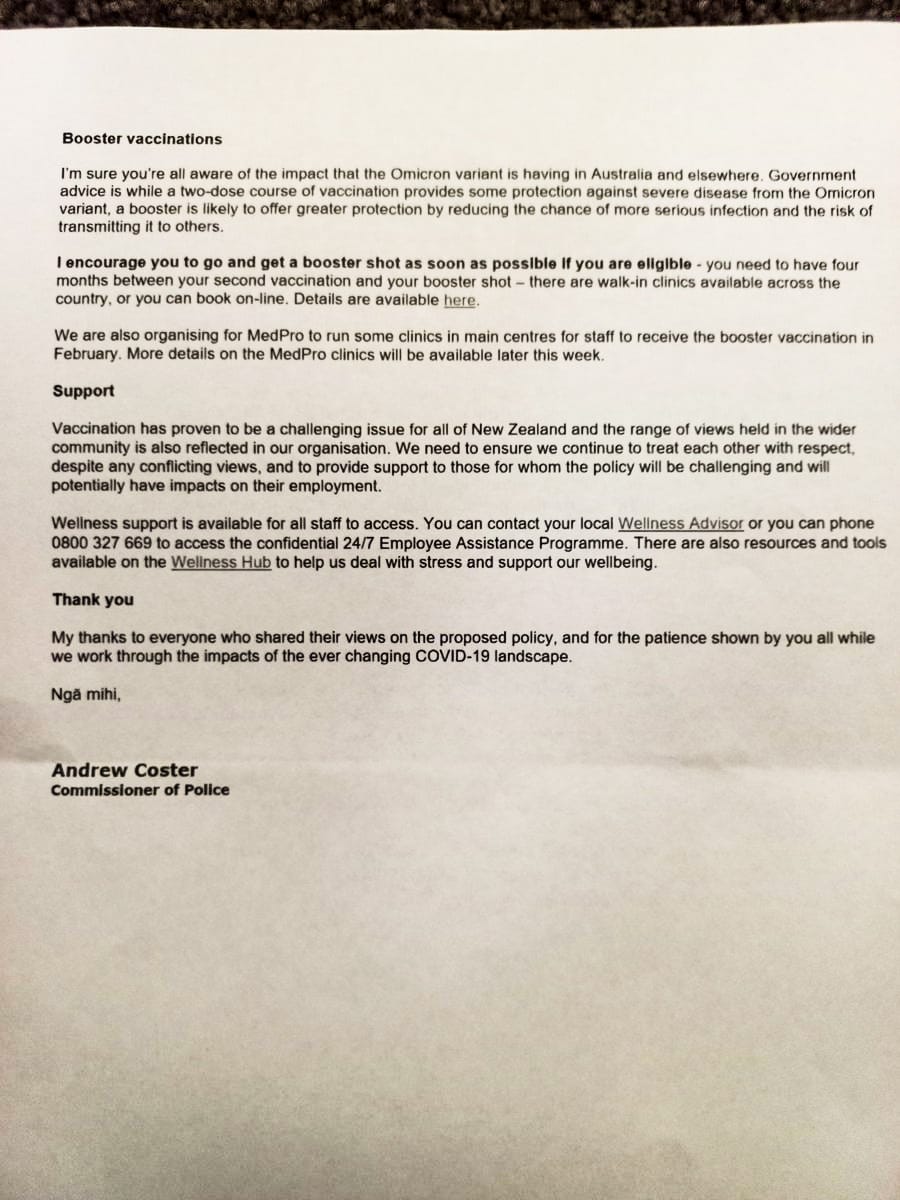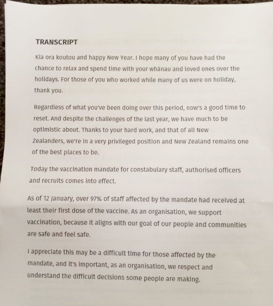 On Monday he posted a video on the Police intranet, along with a transcript of his message explaining what was going to happen next. A patriot and brave soul in the Police has taken screenshots/printouts of this message, but more importantly the significant push back from sworn officers in the comments.