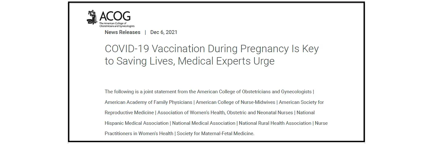 On 6 December 2021, ACOG issued a joint statement titled “Covid-19 Vaccination During Pregnancy Is Key to Saving Lives.”