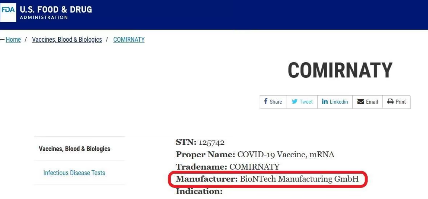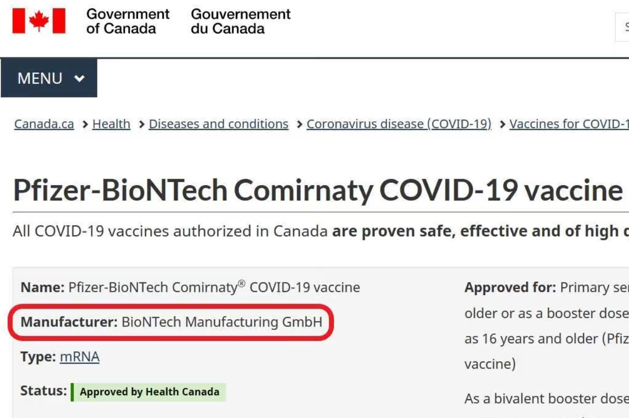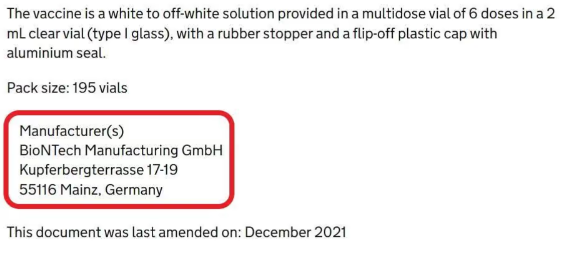 But the problem with this is that Pfizer is not in fact the manufacturer of the drug in question. Yes, it is to various degrees responsible for the physical process of manufacturing it for many (though not all) markets. But it always manufactures it on behalf of another company, which as a matter of legal fact is the actual (owner and) manufacturer: namely, the German company BioNTech.