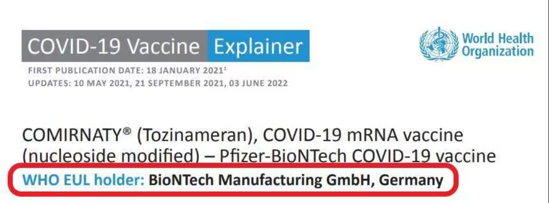 This is in keeping with the practice of the World Health Organization and regulators the world over, which likewise identify BioNTech, not Pfizer, as the manufacturer of the “Pfizer-BioNTech” vaccine.