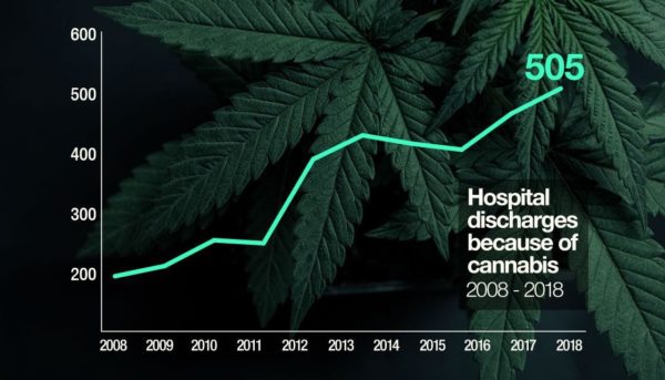Statistics, collected by the Ministry of Health, show that in 2008 only 192 people were released from hospital with a primary cannabis diagnosis. However, by 2018, this had increased to 505.