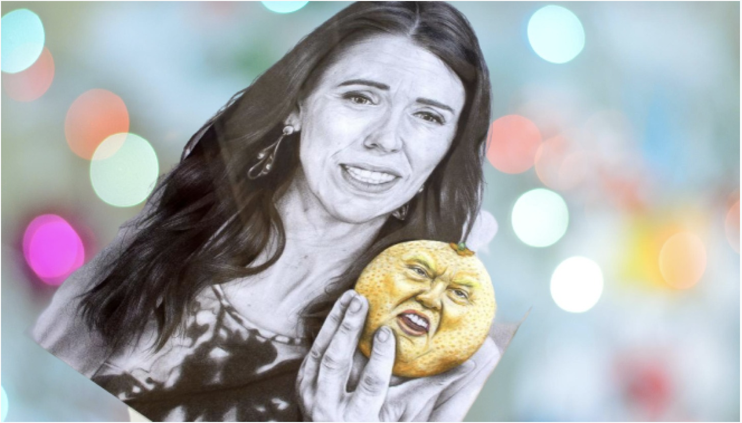 The Artwork for sale on Trademe of Ardern holding an orange with Trump’s face