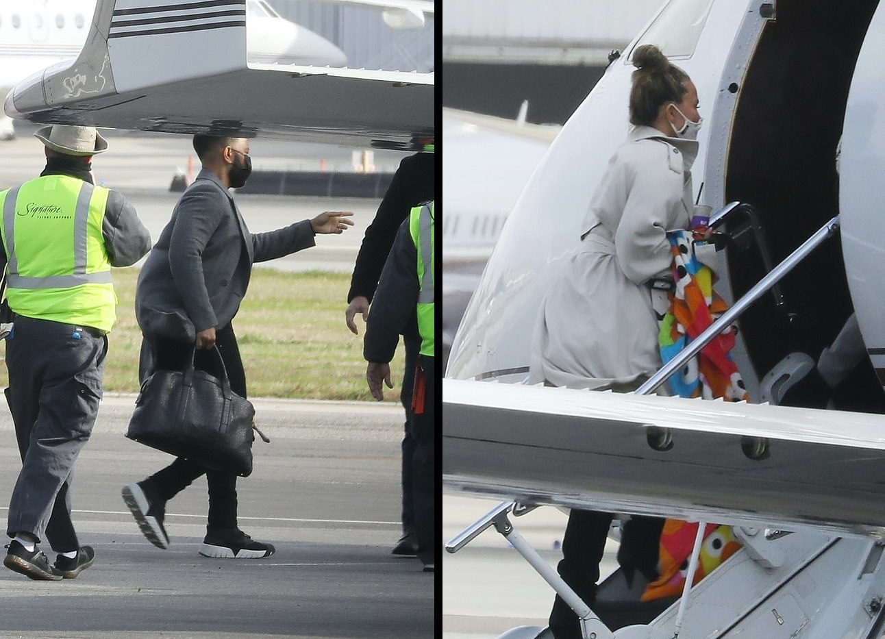 Chrissy Teigen and John Legend boarding a private jet to travel to President Joe Biden’s inauguration.